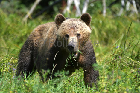 On the land, there are some large mammals. These include elks, moose, caribu, deer, bears, and wolverines(MBg). Some of these animals, like elk and moose, also migrate in the winter.